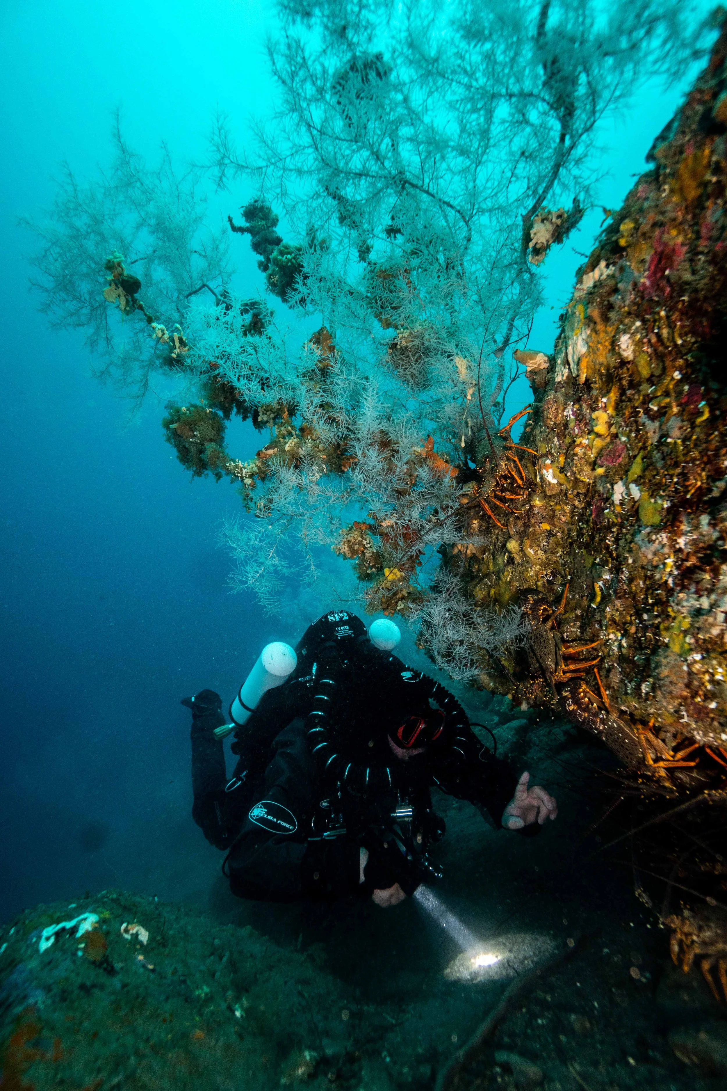 Resident populations of several Shark & Ray species, abundent Lobster, Octopus & diverse fish species. All in an ice scuptured wall diving paradise, forested with ancient deep water corals - New Zealand’s Coral diving capital & an authentically unique diving environment.